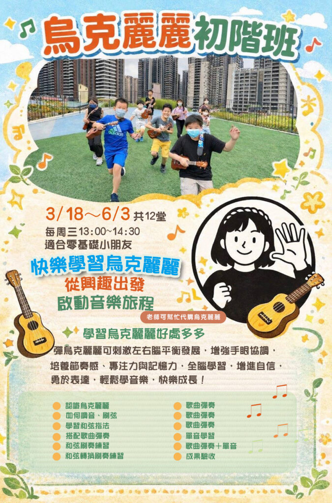 09.烏克麗麗初階班 現在非登記時間,第二階段登記時間為「3/2(一)08:00起至3/4(三)12:00止」 想再看看更多其他我們規劃的多元課程嗎 回到課程列表 admin 08.跆拳道社進階班 10.烏克麗麗進階班