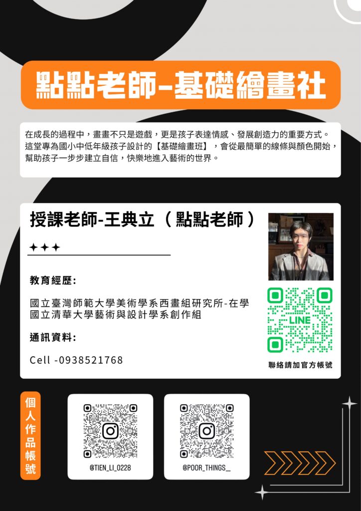 28.點點老師-基礎繪畫社 現在非登記時間,第二階段登記時間為「3/2(一)08:00起至3/4(三)12:00止」 想再看看更多其他我們規劃的多元課程嗎 回到課程列表 admin 27.我的世界-程式暨樂高設計社 29.點點老師-進階繪畫社