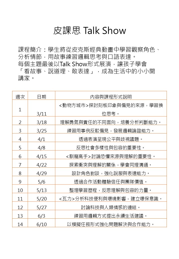 36.皮課思 Talk Show 現在非登記時間,第二階段登記時間為「3/2(一)08:00起至3/4(三)12:00止」 想再看看更多其他我們規劃的多元課程嗎 回到課程列表 admin 35.超級大腦遊戲社 37.家乘家 Art 兒童編織手作社A
